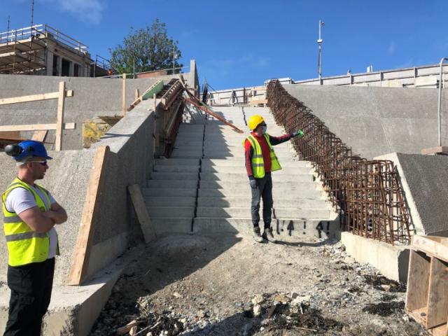 The construction of massive new sea walls supporting the new walkway at the back of the pavilion are also nearing completion. The old Pavilion building has been stabilised enclosed and is now fully weathered. This has allowed the artists’ studios at the lower level and café at the upper level to be progressed with the installation of electrical and mechanical services. While significant progress has been made in all these areas overall progress in constructing the works has been slower than anticipated. A combination of factors has contributed to this including a requirement to stabilise the retaining walls that supports the Queens Road and Dart cutting, difficulty in constructing the jetty and underpinning and stabilisation required for the Pavilion Building. As a consequence of this the Contractor advises a completion date of Summer 2022. This completion date is however subject to the ongoing impact of the site closure caused by the Covid pandemic.