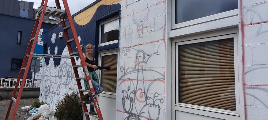 Bloom’s work to date has seen them collaborate with local communities, schools, businesses and families to explore themes that are meaningful to them. We were delighted to have them bring their community-based project to Dún Laoghaire Anseo where they worked with some of the Boylan Centre’s service users to create an artwork that has brightened up their corner of Sussex Street.