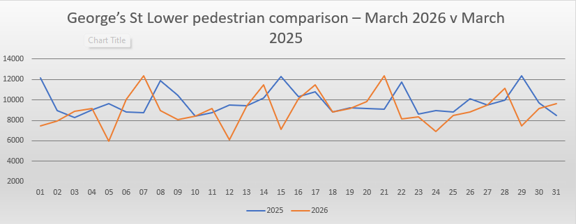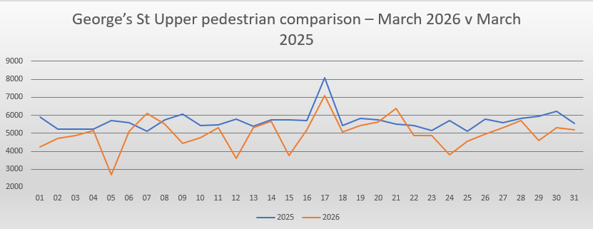 Below are the Lower and Upper George’s street comparisons between March 2026 and March 2025.