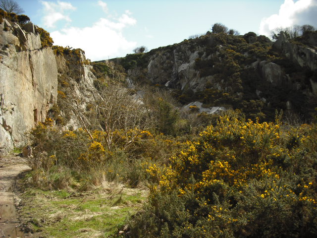 Dalkey Quarry is an abandoned quarry on Killiney hill. It was first used during the constuction of Dún Laoghaire pier between 1815 and 1817, and was finally abanded in 1917. The old quarry gives the appearance of dramatic cliff edge on Killiney hill, with old stone structures on it's peak.
