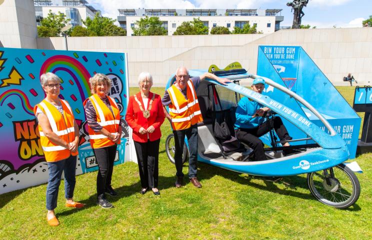 The Cathaoirleach of Dún Laoghaire-Rathdown County Council, Councillor Mary Hanafin celebrates the launch of the National Gum Litter Taskforce Campaign in Dún Laoghaire with Dún Laoghaire Tidy Towns and Dún Laoghaire-Rathdown County Council Environmental Enforcement Officers.