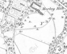 The gardens at Marlay were painted in 1837 by Anne La Touche who lived in the house – she may be showing here how the HaHa allows a clear view across the lawn to the house. The HaHa first appears in mapping as a line on the 1843 OS map.
