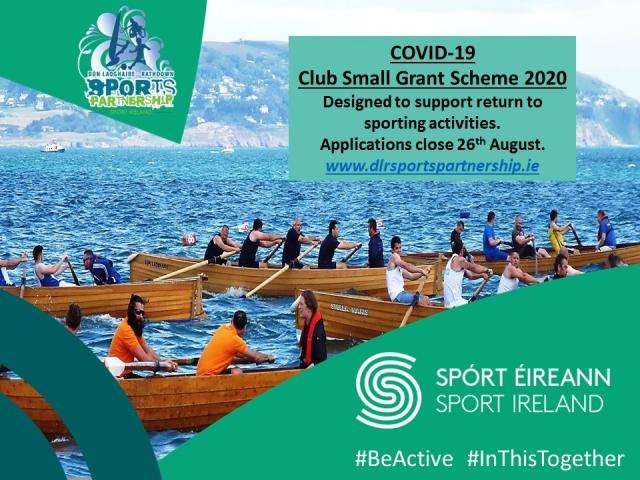 Sports clubs in Dún Laoghaire-Rathdown can now apply for Covid-19 Club Small Grants of up to €1,500 through DLR Sports Partnership. Funding applications must be submitted prior to the 26th August 2020 via the application form on DLR Sports Partnerships website www.dlrsportspartnership.ie.
