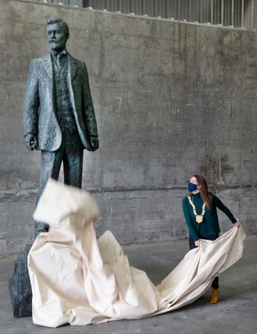 The Roger Casement Statue that will be sited at the end of the new jetty at the Dún Laoghaire Baths project was officially unveiled today by An Cathaoirleach, Úna Power.
