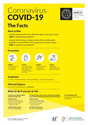The World Health Organization (WHO) has declared the COVID-19 (Coronavirus) a public health emergency of international concern.Ireland is well positioned to detect and respond to cases of COVID-19 (Coronavirus).