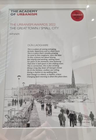 Dún Laoghaire winning the Academy of Urbanism, Great Town award 2022 is recognition of what has been achieved by the Council working closely with local communities, businesses, and other partners. The Academy’s assessment referenced the creation of lively urban spaces that people value and use and the flourishing shopping street with a broad range of retail and services. I am delighted Dún Laoghaire received this award”