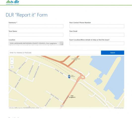 The form has a mapping feature as well as a facility to attach and upload photographs. We will be publicising this form on social media as a means of allowing the public to inform us of physical distancing issues in their locality. The requests are logged on the Council’s CRM system, with a unique reference and assigned to the relevant staff member, as always, but with the online form being more accessible and user-friendly, and it is worth noting that the form is ‘mobile friendly’. Councillors can use this online form, too, if they wish to log COVID-19 related requests. Just click on the ‘Report It’ button on the www.dlrcoco.ie homepage, or click the link below to go straight to the online form.