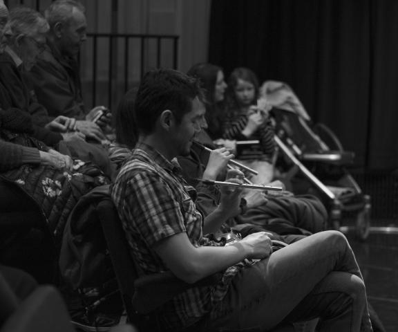 The Studio was packed with people and Comhaltas Ceoltóirí Éireann held a concert for the capacity crowd. During the concert, Comhaltas Ceoltóirí Éireann hosted an interactive session with the audience to allow them the opportunity to practise playing musical instruments such as the bodhran and the tin whistle. As well as that, they were shown how to dance and how to lilt and this was all done bilingually.