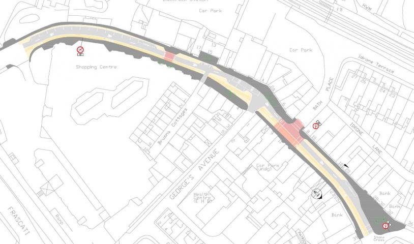 Next week, dlr will be commencing the installation of a new temporary one-way system, including a contra-flow cycle lane on Rock Hill and Main Street in Blackrock, which will incorporate one-way vehicular traffic flow from the outset. From Monday, 8th June the installation will be carried out in two parts with the first part involving occupation of the east (coastal) side of the carriageway whilst the second part will require occupation of the west side of the carriageway (Rock Road side).