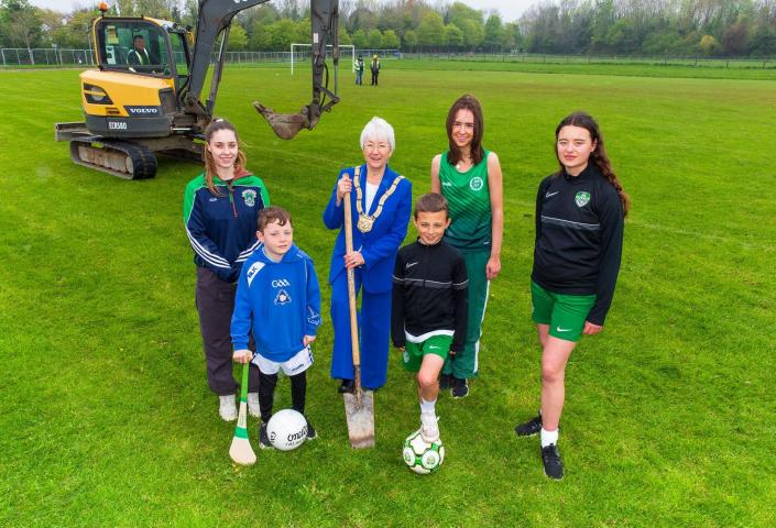Today, Councillor Mary Hanafin, Cathaoirleach and Frank Curran, Chief Executive, Dún Laoghaire Rathdown County Council turned the sod for the major rejuvenation of pitches and running track at Kilbogget Park. GAA, Football and Athletics clubs will benefit from the enhanced facilities as the works will transform sports activities in the park. Club representatives have warmly welcomed the major upgrade and said that they will be looking forward to inspiring their members even further in their achievements.