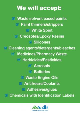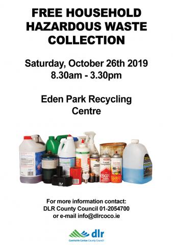 Free Household Hazardous Waste Collection Saturday 26th October 2019 0830am - 3.30pm Eden Park Recycling Centre.