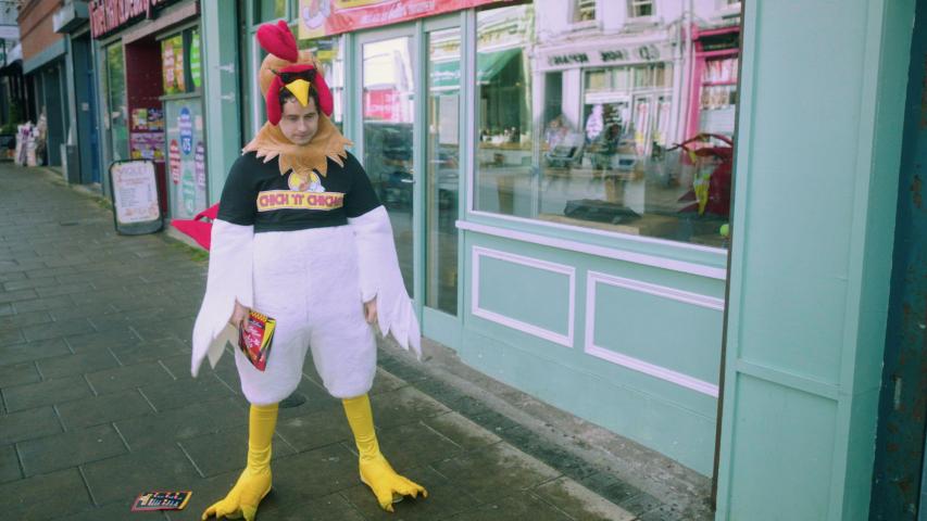 A cash-strapped dad decides to be a mascot of a chicken takeaway to make ends meet for his young family. They need to leave the nest of his overbearing mother, but will the plucky dad be able to last being dressed as a chicken! Written by Imelda Carroll, it is directed by Richard Keane and produced by Nadege Dumont. Chicken Out was filmed in Dundrum & Dún Laoghaire.